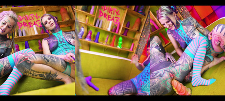 Tattooed lesbians toying from Katz