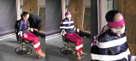 A woman tied and blindfolded from Rachel