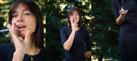 A girl smoking outdoors from Liya